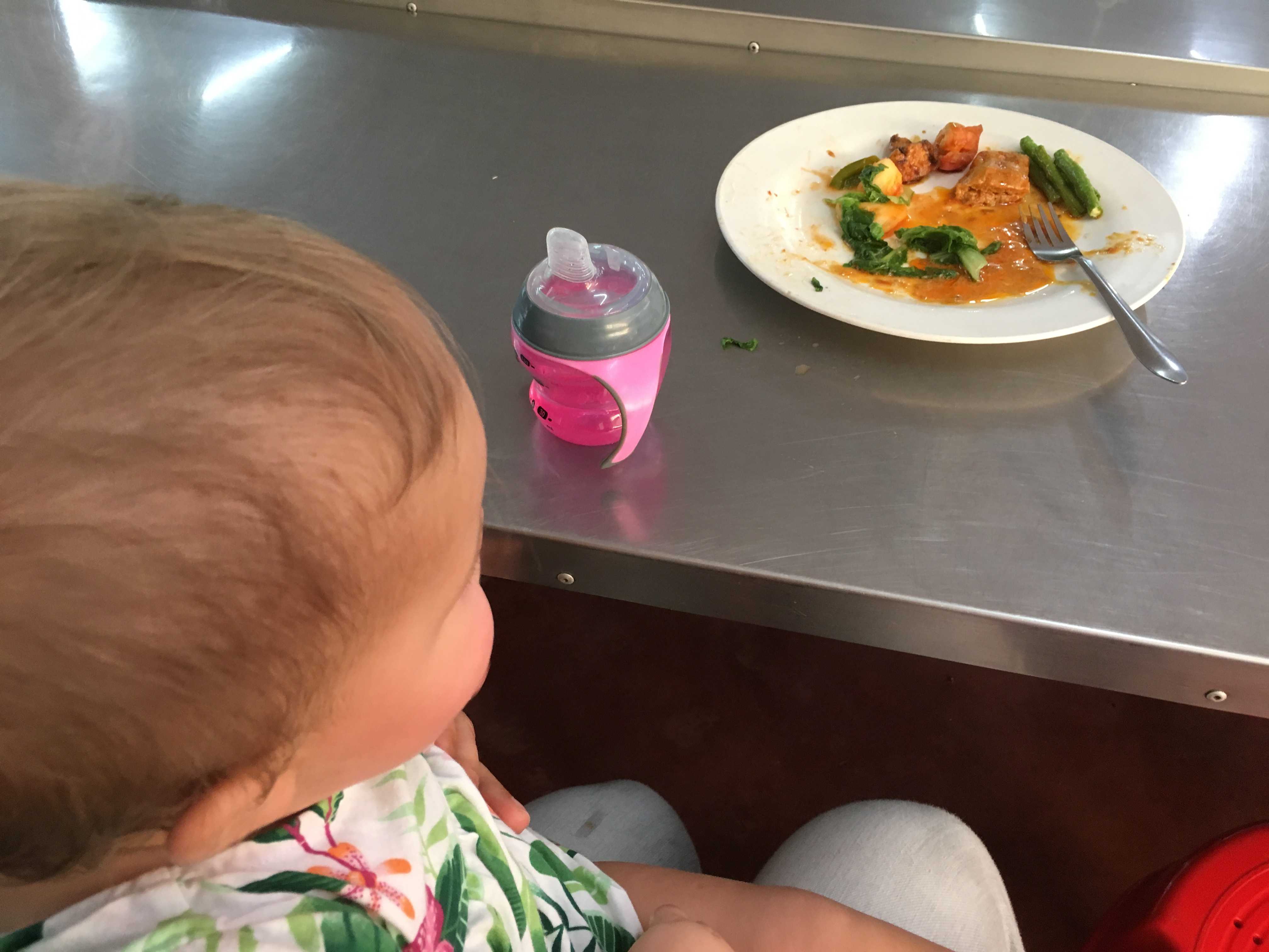 The older Chinese ladies serving lunch (“the aunties”) loved having a baby in their company, and one of them working the cash register asked me where the baby was when I returned the second day with husband in tow. When I returned for the third day in a row, the same auntie passed the baby around the kitchen.